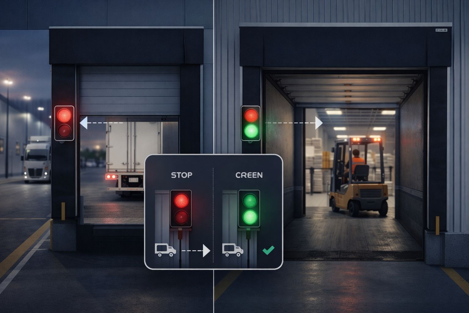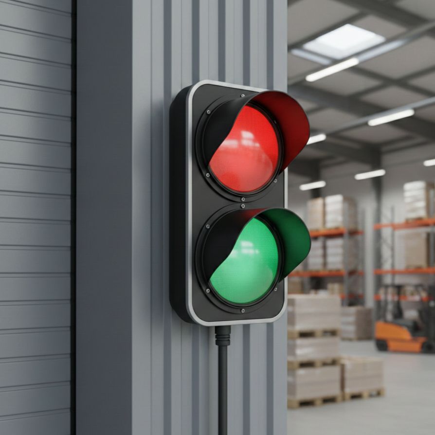 نظام تحكم يسمح بتشغيل وتغيير الإشارات من داخل المستودع حسب حالة التحميل أو التفريغ.