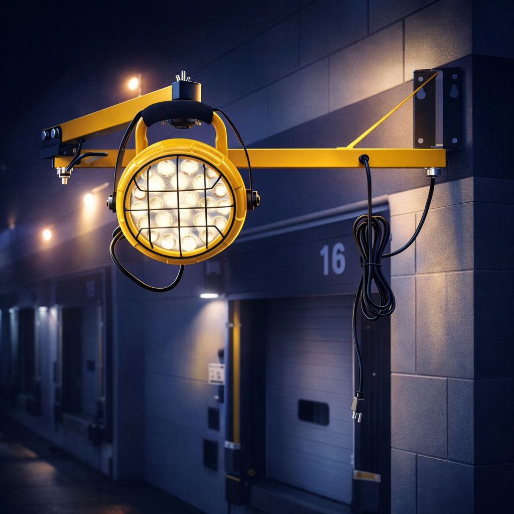 ذراع مرن أو قابل للتوجيه يسمح بتوجيه الإضاءة إلى داخل الشاحنة أو إلى مناطق مختلفة داخل المقطورة.