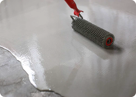 - معالجة السطح الخرساني (Grinding أو Shot Blasting)